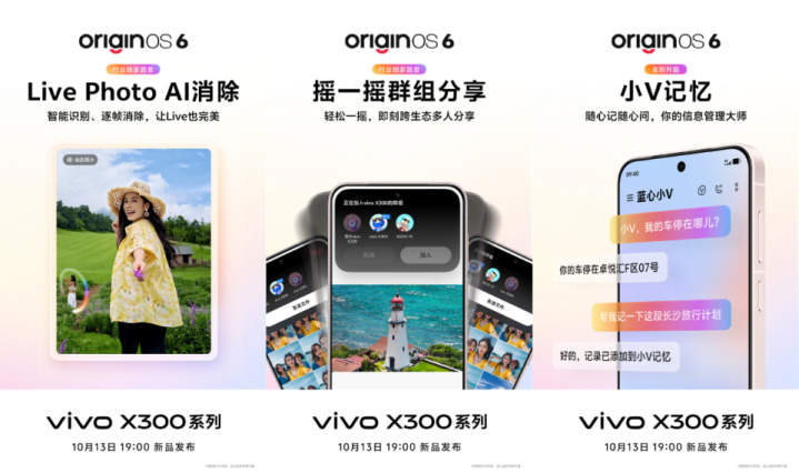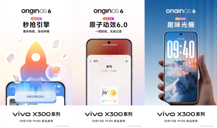10月10日, @vivo 全新系统OriginOS 6正式发布,一起发布的还有vivo自研蓝河操作系统 3。根据官宣显示,vivoX300系列与iQOO15将首OriginOS 6,vivo WATCH GT 2则首发BlueOS 3。此外,日前有网友爆料,vivo X300系列目前已经进入部分vivo线下门店,除了新机已上展示台,vivo X300系列两款新机的详细参数也都被晒了出来。